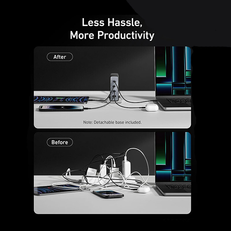 برخورداری از 3 عدد درگاه خروجی Type-C و یک عدد USB، دارای قابلیت شارژ همزمان 4 دستگاه با مجموع توان خروجی کلی 240 وات