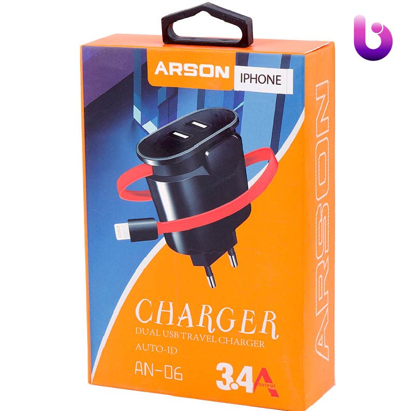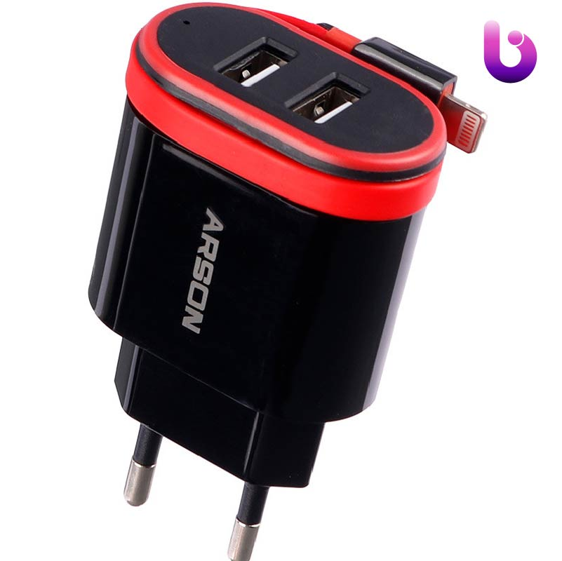 شارژر سیم وصل آیفونی Arson AN-06 + دو پورت USB