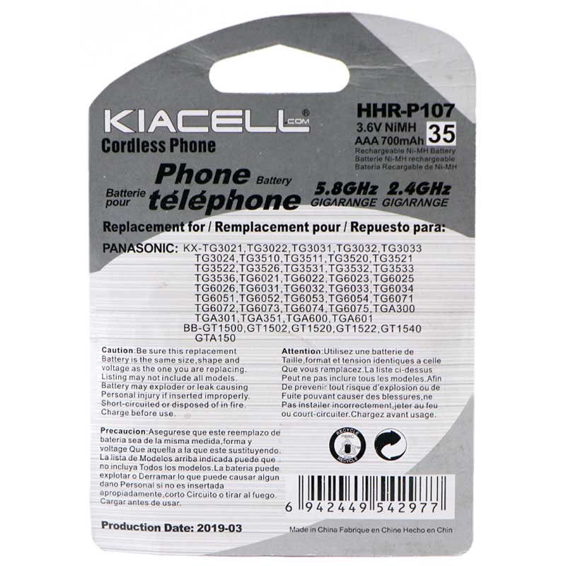KIACELL HHR-P107 700MAH CORDLESS PHONE BATTERY