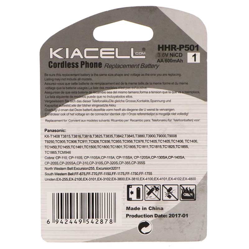 KIACELL HHR-P501 600MAH CORDLESS PHONE BATTERY