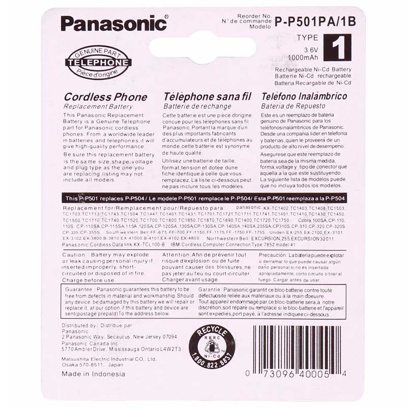 باتری تلفن بی سیم Panasonic P-P501