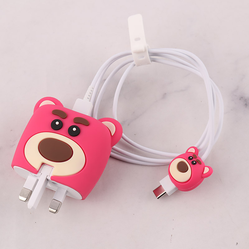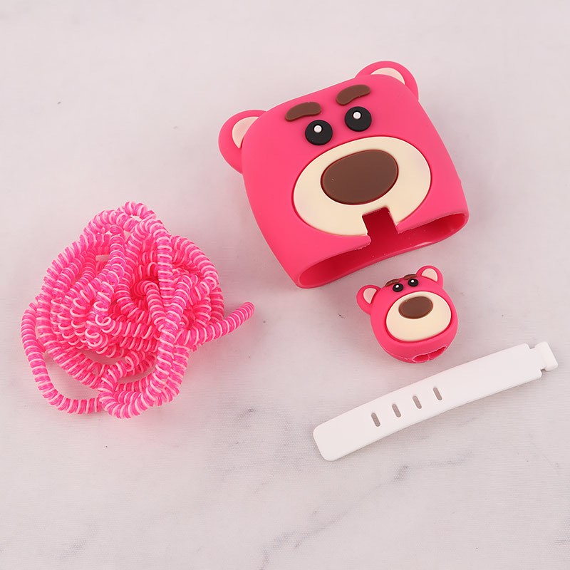 ست محافظ کابل و کلگی شارژر سامسونگ طرح خرس صورتی