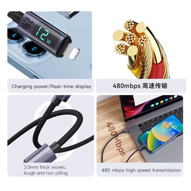 کابل لایتنینگ فست شارژ 2.4 آمپر یسیدو CA122L طول 1.2 متر