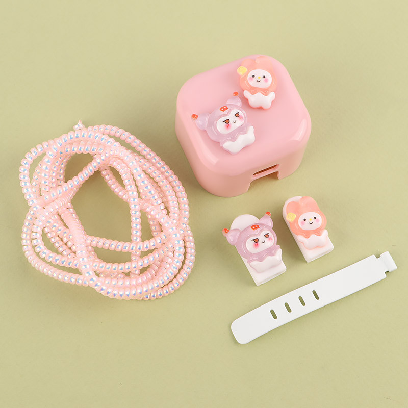 این مجموعه شامل محافظ کلگی شارژ، محافظ کابل فنری، محافظ سری کابل و بست کابل می باشد. با خرید این ست می توانید علاوه بر محافظت بیشتر از کابل و شارژر خود، ظاهری زیبا و فانتزی به آنها ببخشید. استفاده از این ست سبب خواهد شد طول عمر مفید کلگی شارژ و کابل بیشتر از حالت عادی حفظ شود و از آنها در برابر عواملی مانند ضربه، پارگی و کشش محافظت به عمل آید.