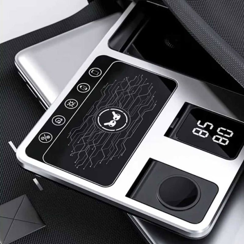 مجهز به سه عدد خروجی از نوع پد شارژ وایرلس مناسب برای شارژ همزمان گوشی، کیس شارژ ایرپاد و ساعت هوشمند
