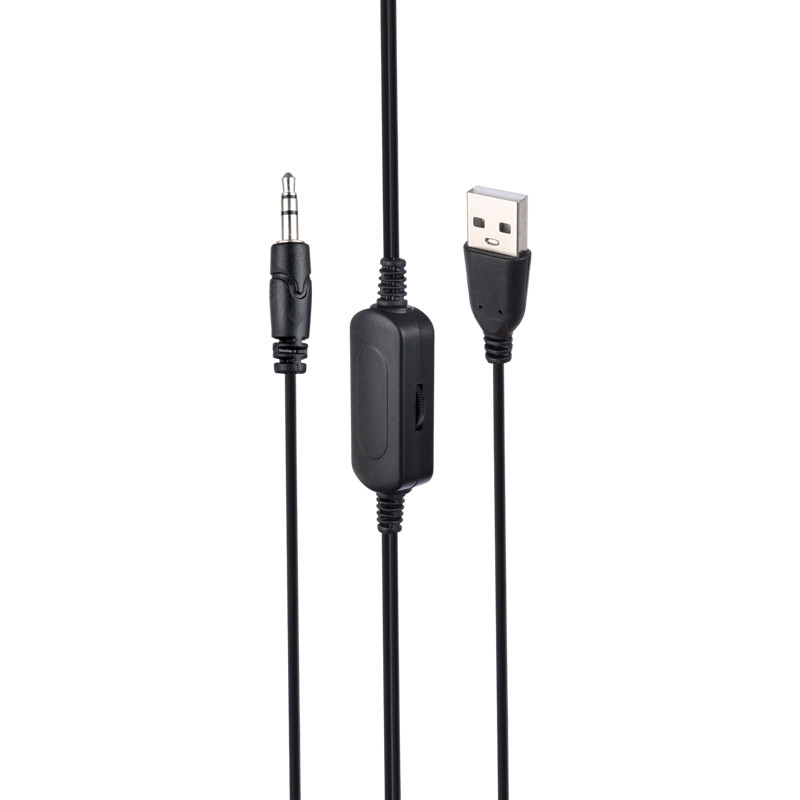 تامین انرژی از طریق رابط USB به طول حدودی 115 سانتی متر، دارای کلید چرخشی بر روی کابل جهت تنظیم ولوم