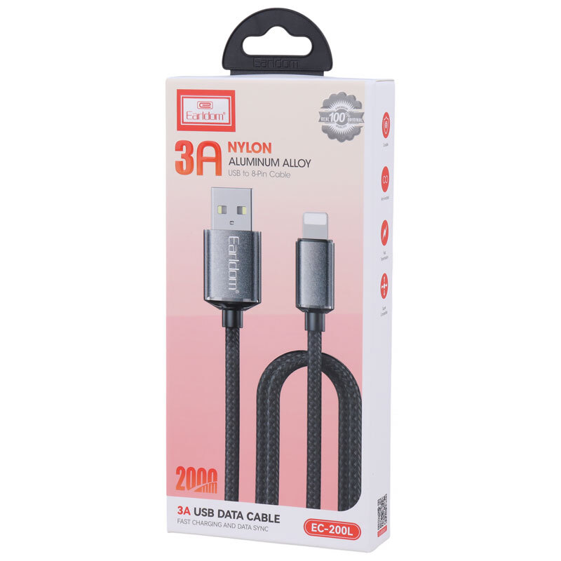 کابل لایتنینگ فست شارژ 3 آمپر ارلدام EC-200L طول 2 متر