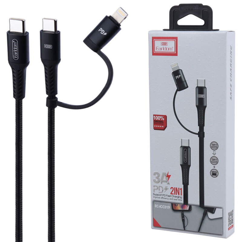 کابل تبدیل USB-C to USB-C / Lightning ارلدام مدل EC-iCC019