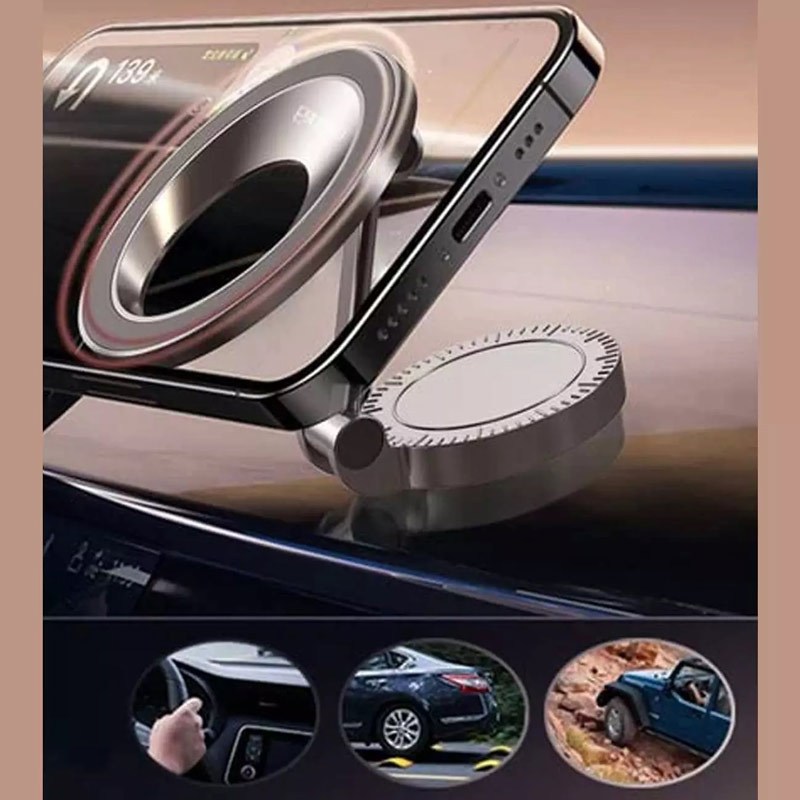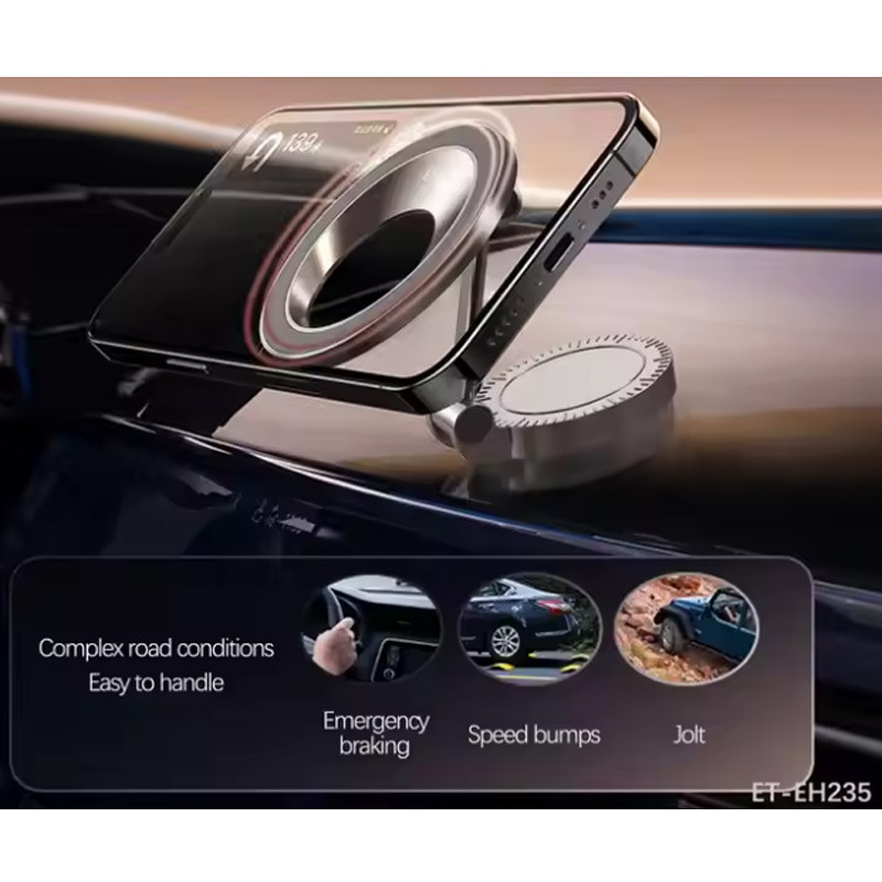 مجهز به نگهدارنده مغناطیسی با آهنربای قوی، مناسب برای اتصال گوشی های سازگار در سایز 4.7 الی 7.2 اینچ با امکان تنظیم ارتفاع و جمع شوندگی برای حمل آسان