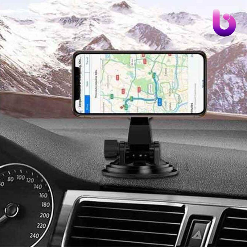 هولدر داشبوردی مگنتی Earldom مجهز به پایه مکنده جهت اتصال به داشبورد، شیشه و سایر سطوح، امکان تنظیم زاویه بازو توسط کلید چرخشی تعبیه شده