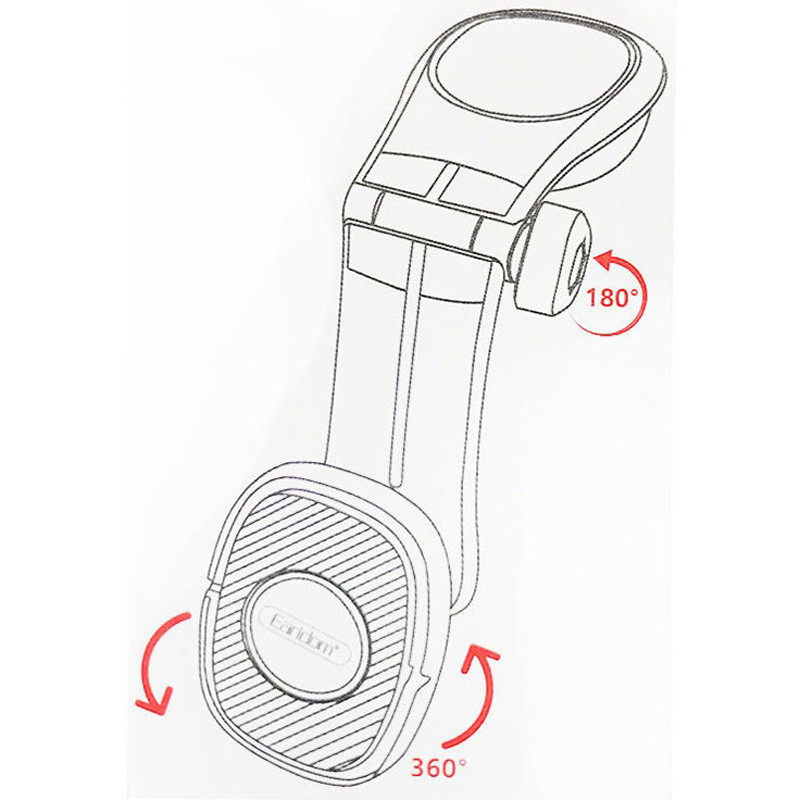 مجهز به پایه مکنده جهت اتصال به داشبورد، شیشه و سایر سطوح، امکان تنظیم زاویه بازو تا 180 درجه توسط کلید چرخشی تعبیه شده