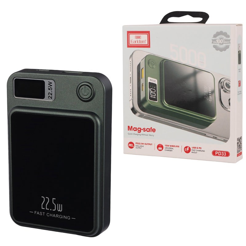 شارژر همراه فست شارژ وایرلس ارلدام مدل ET-PD33 با ظرفیت 5000 میلی آمپر ساعت