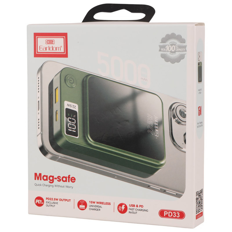 پاور بانک بی سیم فست شارژ ارلدام ET-PD33 PD 20W ظرفیت 5000 میلی آمپر ساعت
