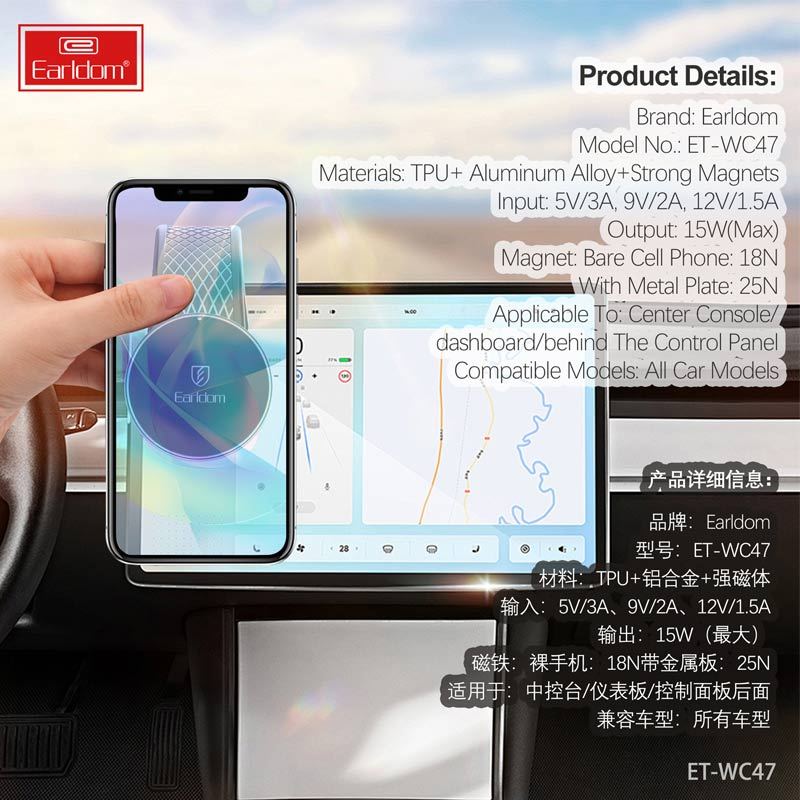 هولدر و شارژر وایرلس 15 وات ارلدام ET-WC47