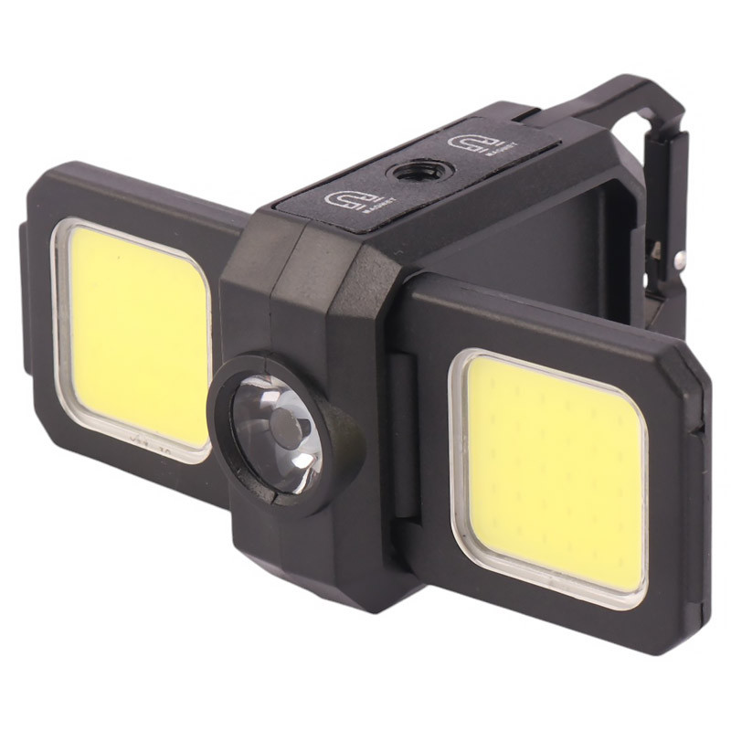 مجهز به دو عدد چراغ COB و یک عدد چراغ LED با نوردهی مهتابی، دارای دو حالت نوردهی قوی و چشمک زن