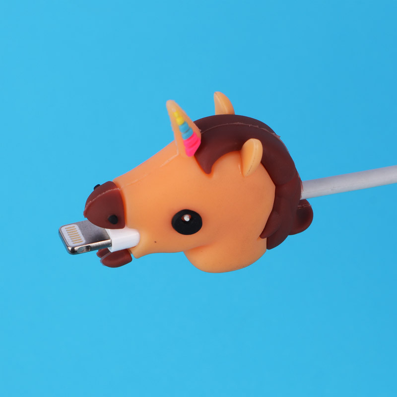 محافظ کابل شارژر طرح اسب تک شاخ کرم قهوه ای