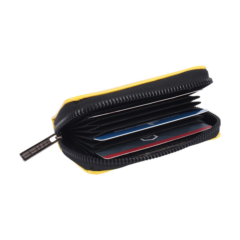 ساخته شده از جنس چرم با طراحی دور دوخت، نحوه باز و بسته شدن توسط زیپ با سرزیپ فلزی، مناسب برای قرارگیری کارت های اعتباری، مدارک و ...