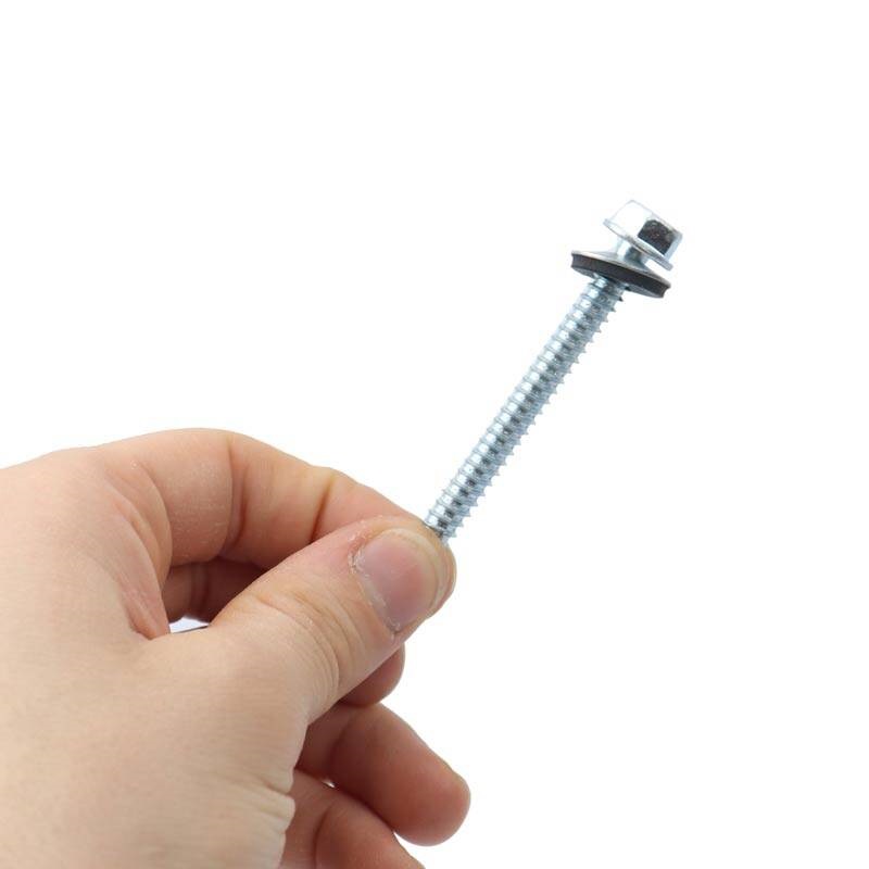 پیچ سر مته آچار خور واشر دار، یک واشر فلزی گالوانیزه و یک واشر پلاستیکی جهت محکم و آب بندی شدن