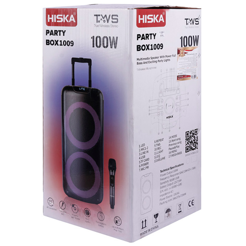 اسپیکر چمدانی بی سیم Hiska مدل Party Box1009 به همراه میکروفون و ریموت کنترل