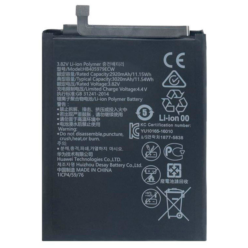 نوع باتری لیتیوم-یون پلیمری با ظرفیت 3020 میلی آمپر ساعت و ولتاژ 3.82 ولت، سازگار با گوشی موبایل هواوی Y5 Prime 2018