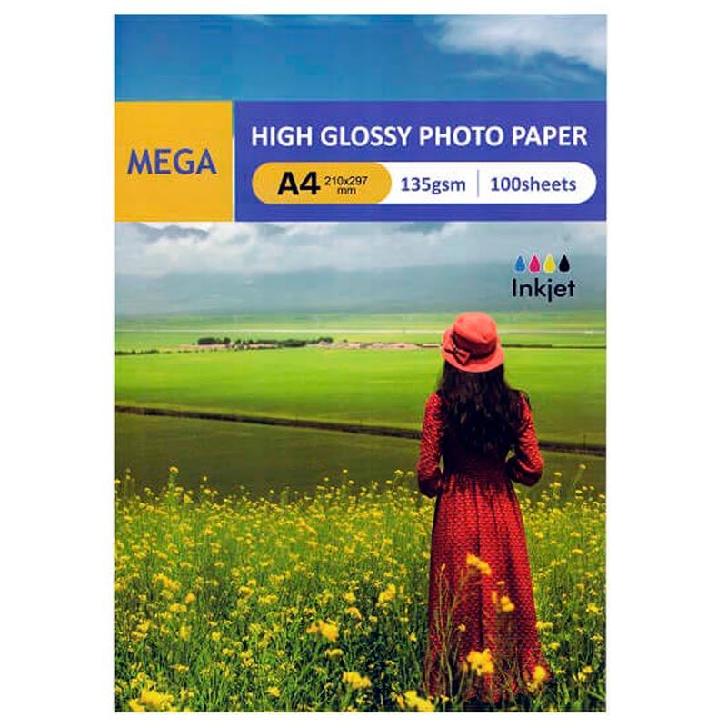 کاغذ گلاسه A4 مگا مخصوص پرینتر جوهر افشان 135 گرم