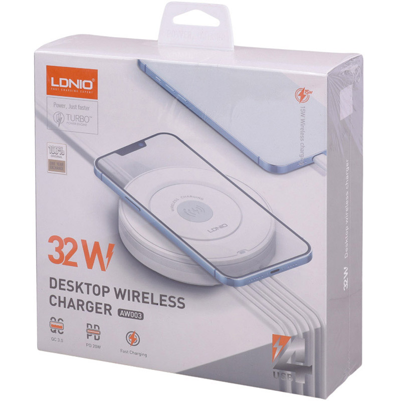 شارژر بی سیم فست شارژ 4 پورت Ldnio AW003 QC3.0 PD 32W