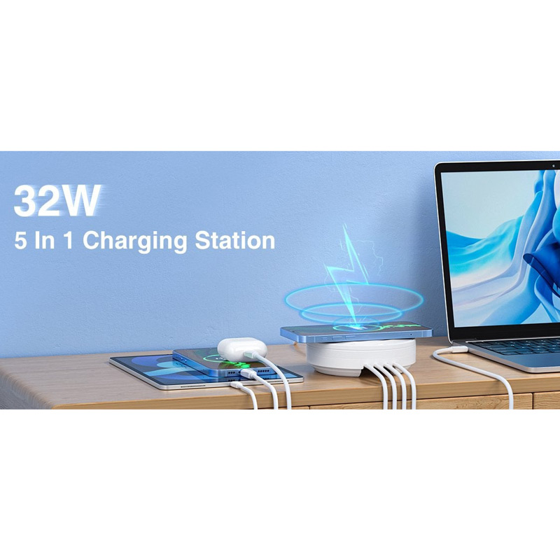 مجهز به سه عدد درگاه خروجی USB و یک عدد Type-C، میزان توان خروجی کلی برابر با ۳۲ وات