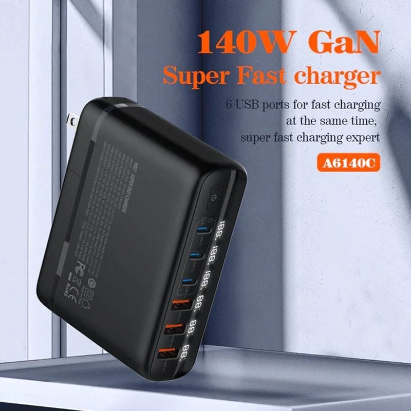 Ldnio A6140C 6Port GaN 5A QC5.0 PD 140W Fast Wall Charger