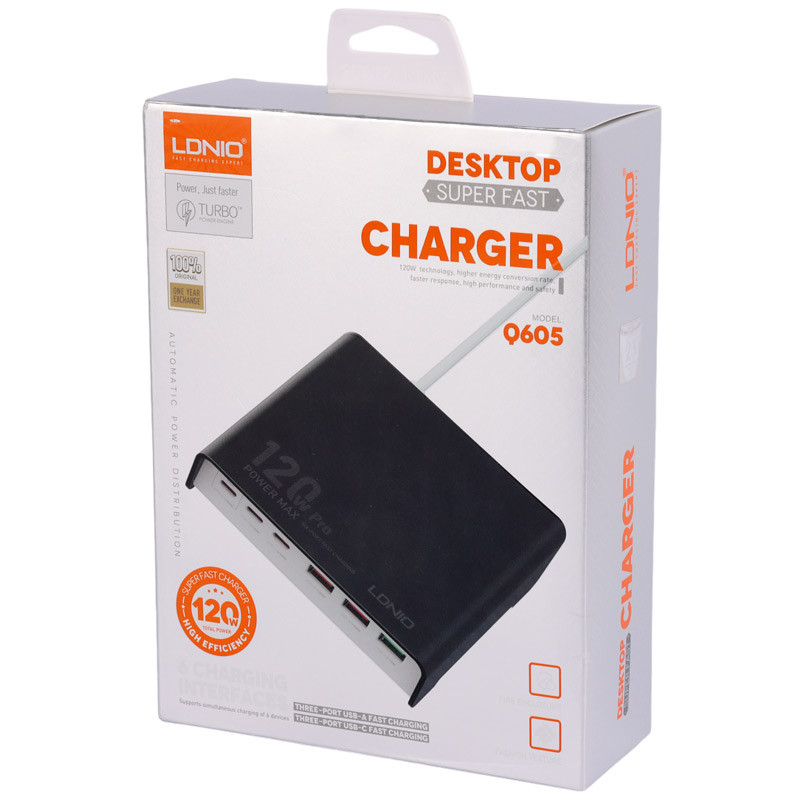 شارژر رومیزی فست شارژ Ldnio Q605 6Port 5A QC3.0 PD3.0 65W
