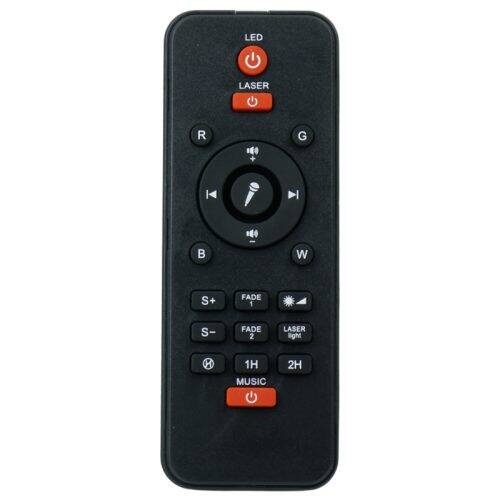 ارائه یک عدد ریموت کنترل به همراه محصول به منظور مدیریت نورپردازی و فایل در حال پخش از راه دور
