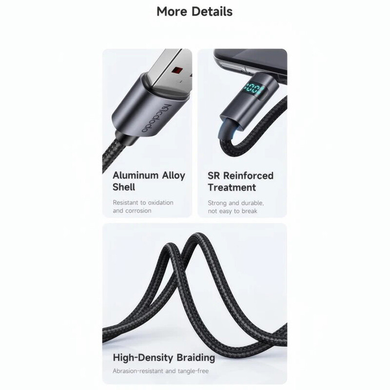 کابل تایپ سی فست شارژ 66 وات مک دودو CA-652 طول 1.2 متر