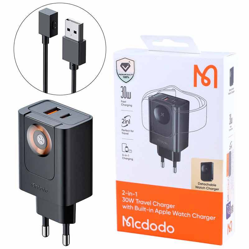 کلگی فست شارژر و شارژر اپل واچ مک دودو مدل CH-370 توان خروجی 30 وات به همراه کابل مگنتی