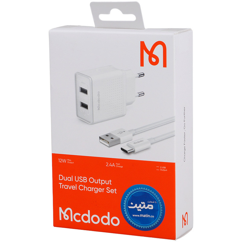 شارژر دیواری فست شارژ Mcdodo CH-3972 2Port 2.4A 12W + کابل تایپ سی