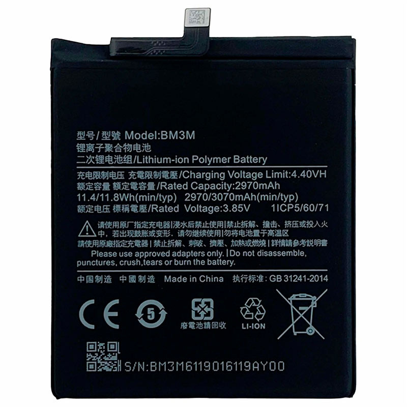 نوع باتری لیتیوم-یون پلیمری با ظرفیت 3070 میلی آمپر ساعت و ولتاژ ۳٫۸۵ ولت، سازگار با گوشی موبایل شیائومی Mi 9 SE M1903F2G
