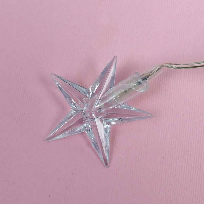 ریسه تزیینی باتری خور طرح ستاره شیشه ای با طول 250 سانتی متر مهتابی