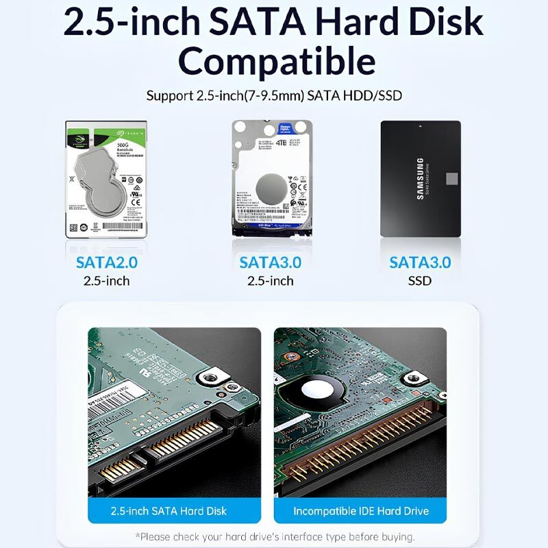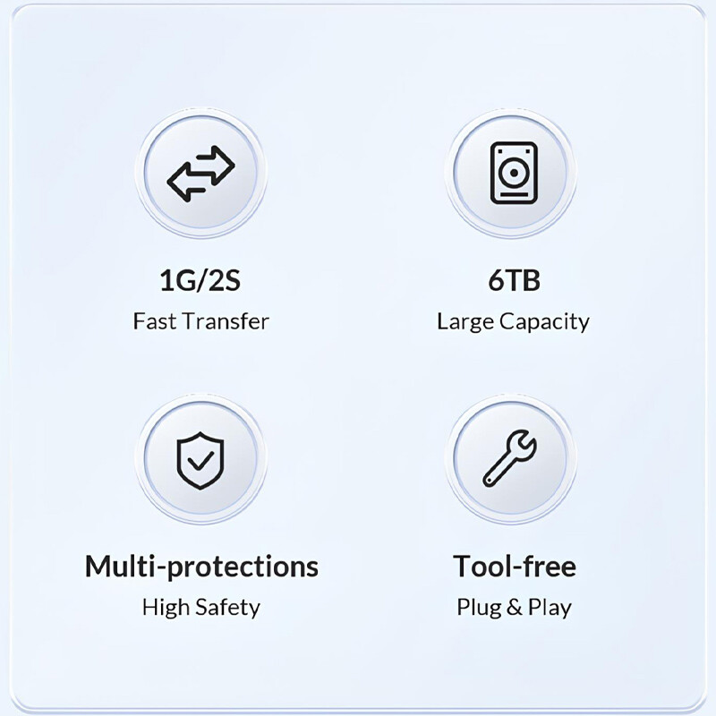 پشتیبانی از SSD و هاردهایی با سایز 7 الی 9.5 میلی متر و حداکثر ظرفیت 6 ترابایت، دارای رابط خروجی Type-C با سرعت انتقال 5 گیگابیت بر ثانیه
