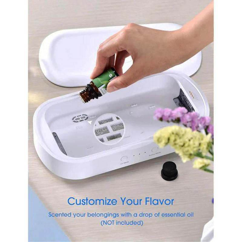 مجهز به محفظه داخلی جهت ضد عفونی و خوشبو کننده دستگاه هایی نظیر گوشی، ایرپاد، ساعت هوشمند و ...