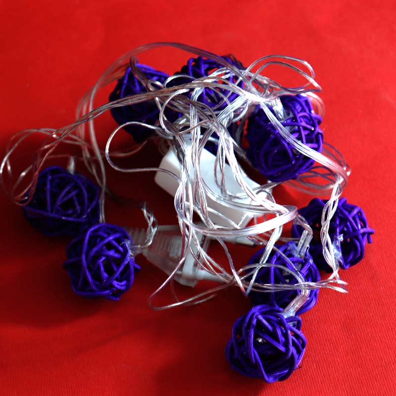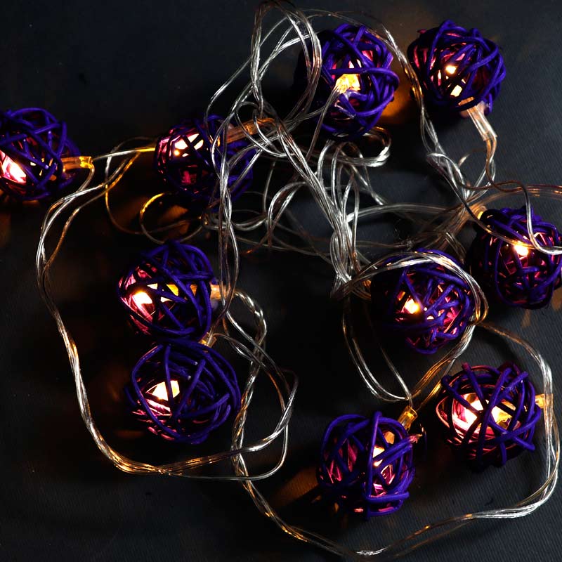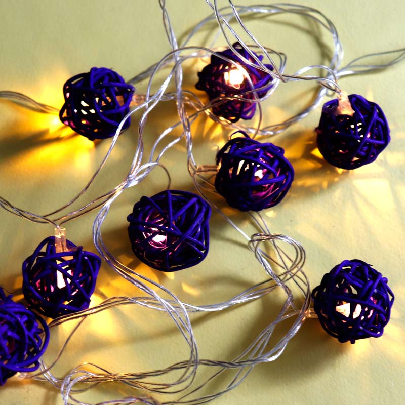 ریسه طرح گوی چوبی بنفش 10 لامپ آفتابی طول 2.5 متر
