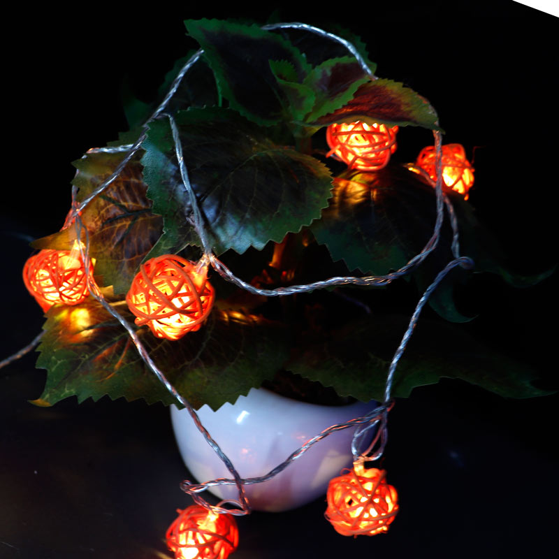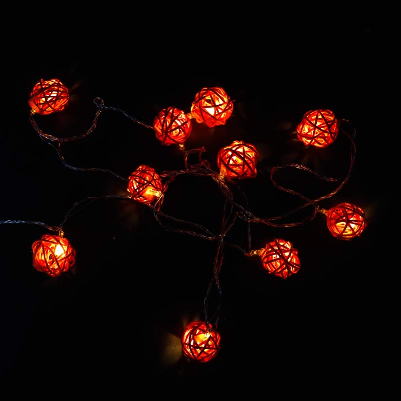 ریسه طرح گوی چوبی نارنجی 10 لامپ آفتابی طول 2.5 متر