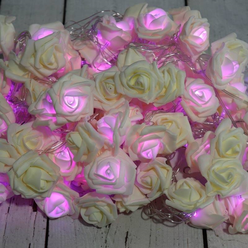 ریسه طرح گل سفید فومی صورتی 9 متری