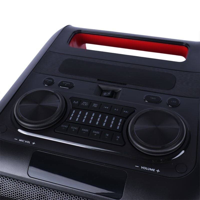 برخورداری از 2 عدد درگاه میکروفون و یک عدد ورودی گیتار، مجهز به کلید های فیزیکی جهت تنظیم موزیک