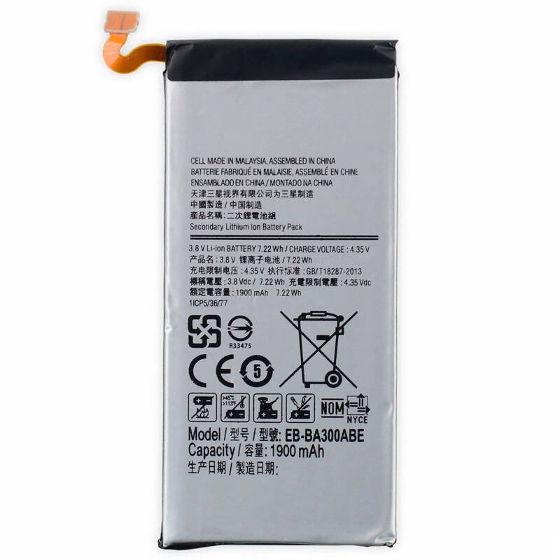 نوع باتری لیتیوم یونی با ظرفیت ۱۹۰۰ میلی آمپر ساعت و ولتاژ ۳٫۸ ولت، سازگار با گوشی موبایل سامسونگ Galaxy A3 2015