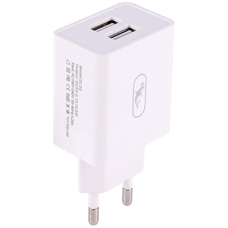 Sky Dolphin SC30T 2Port 2.1A 10.5W WALL CHARGER WITH Type-C CABLE