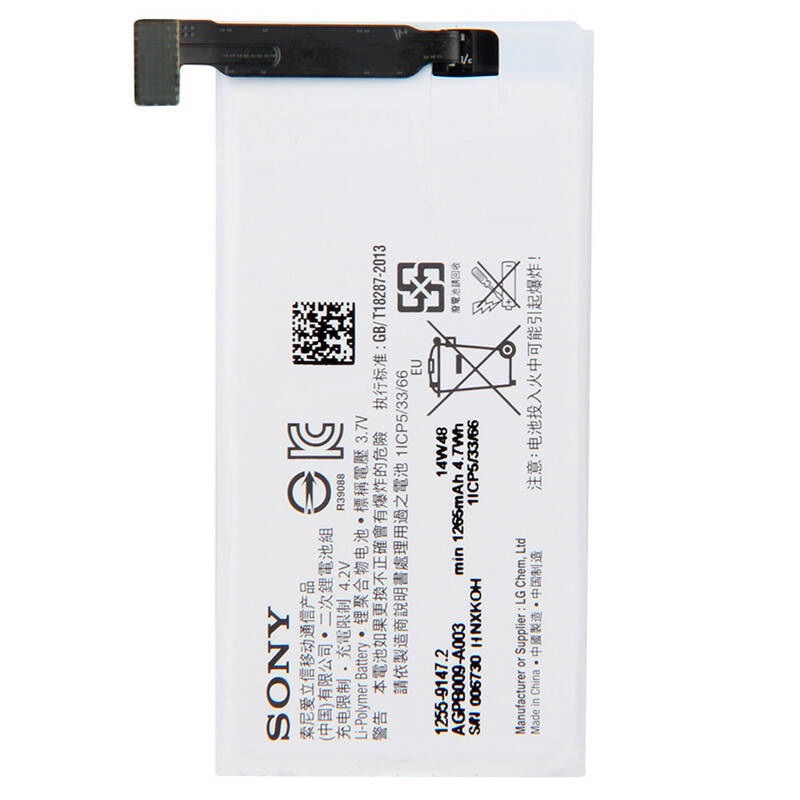 نوع باتری لیتیوم پلیمری با ظرفیت ۱۲۶۵ میلی آمپر ساعت و ولتاژ ۳٫۷ ولت، سازگار با گوشی موبایل سونی Xperia Go