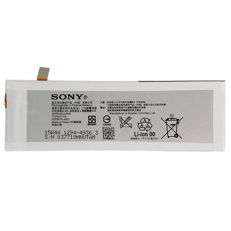 نوع باتری لیتیوم پلیمری با ظرفیت ۲۶۰۰ میلی آمپر ساعت و ولتاژ ۳٫۸ ولت، سازگار با گوشی موبایل سونی Xperia M5 Dual