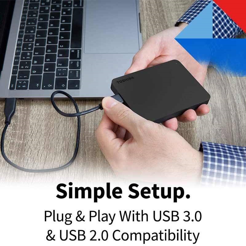 هارد اکسترنال توشیبا مدل Canvio Basics دارای طراحی صیقلی با ابعادی جمع و جور و قابل حمل در دست و کیف می باشد که با میزان ظرفیت 2 ترابایت فضای مناسبی را برای ذخیره سازی فایل های مختلف نظیر ویدئوهای HD، تصاویر، اسناد و … فراهم می کند. این حافظه با سایز هد 2/5 اینچی از متریال باکیفیت و مرغوبی در ساخت بهره برده که مقاومت کافی را در برابر آسیب های احتمالی در جهت حفاظت از داده های ذخیره شده خواهد داشت. Canvio از اتصال با سیم توسط رابط USB 3.0 به انواع لپ تاپ، سیستم های کامپیوتری و … پشتیبانی می کند و با سرعت ۵ گیگابیت بر ثانیه به صورت Drag and Drop انتقال سریع و ایمن فایل ها را تضمین خواهد کرد. قابلیت Plug And Play نیز برای این هارد در نظر گرفته شده تا بدون نیاز به نصب درایور و یا نرم افزار خاصی با دستگاه های هوشمند دارای سیستم عامل ویندوز، مک و …ارتباط برقرار نماید. انرژی حافظه اکسترنال Toshiba از طریق پورت USB تامین می شود و نشانگر LED نیز جهت اعلام وضعیت عملکرد بر روی بدنه محصول قرار دارد.