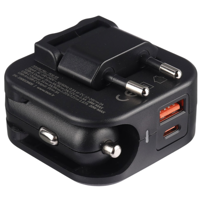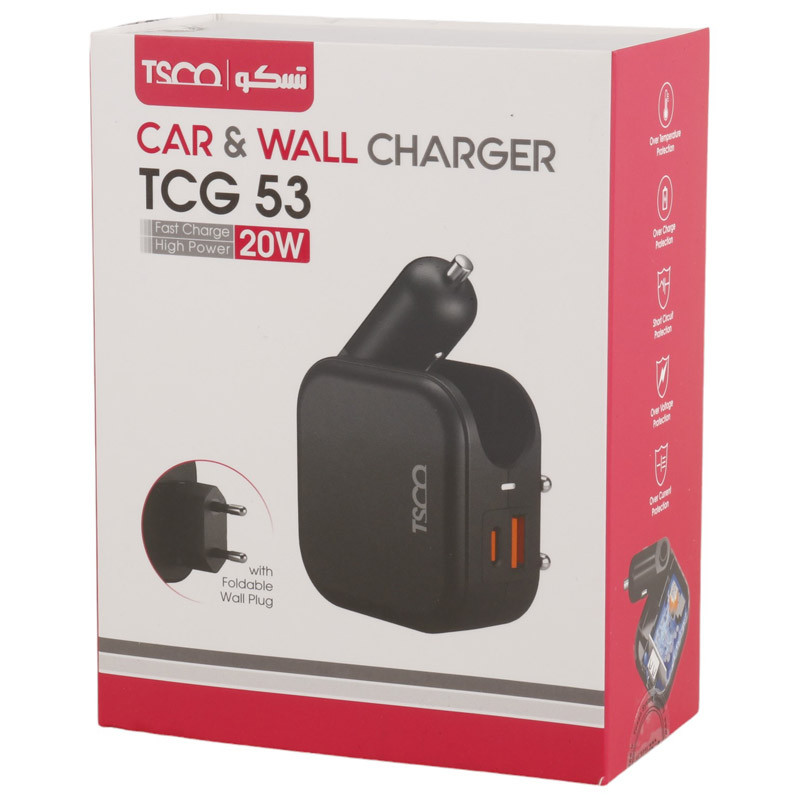 شارژر فندکی و دیواری فست شارژ TSCO TCG 53 3A 20W + کابل تایپ سی
