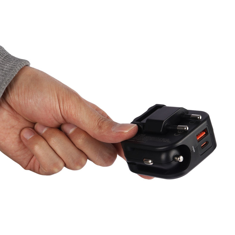 قابلیت استفاده بعنوان شارژر فندکی با وجود رابط فندکی یا شارژر دیواری با وجود سری تاشو دوشاخه دار