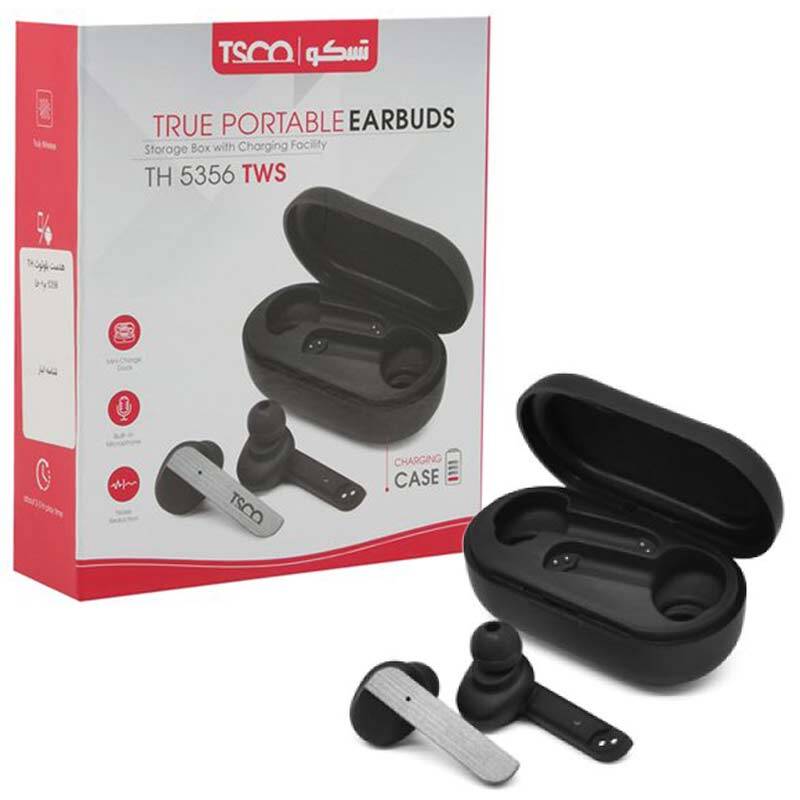 هندزفری TH5356 TWS محصول شرکت ایرانی تسکو می باشد که با طراحی ارگونومیکی به صورت In Ear ساخته شده است تا به راحتی داخل گوش قرار گیرد و در استفاده طولانی مدت باعث خستگی گوش کاربر نشود. بر روی بدنه هر کدام از ایرباد ها یک چراغ LED کوچک جهت نمایش وضعیت شارژ هندزفری تعبیه شده است. اتصال به این هندزفری با استفاده از بلوتوث نسخه ۵٫۰ انجام می گیرد و با برد خود این امکان را به کاربران می دهد که بعد از اتصال موبایل هوشمند، تبلت و … به هندزفری تا ۱۰ متر بدون قطعی موسقیی از دستگاه جفت شده دور شوند. این هندزفری مجهز به قابلیت TWS می باشد که به کاربر کمک می کند که هر کدام از ایرباد ها را به صورت جدا گانه و هم زمان به دو دستگاه مختلف یا یک دستگاه متصل کند و صدای قدرتمند تری را به گوش برساند.