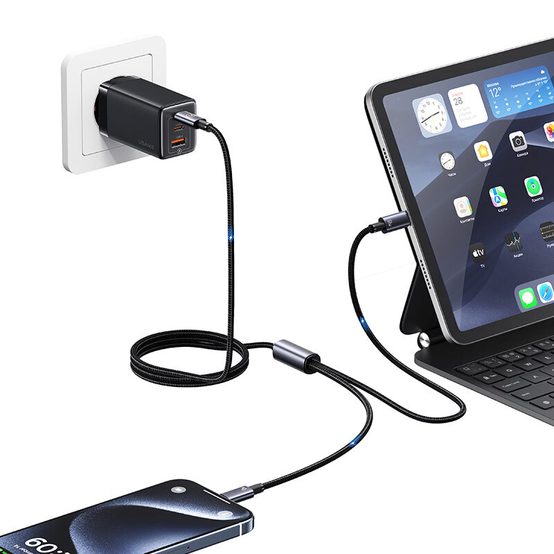 Usams SJ740 60W 1.2m 2in1 Type-C To Dual Type-C Cable